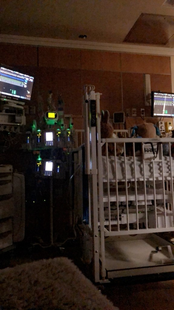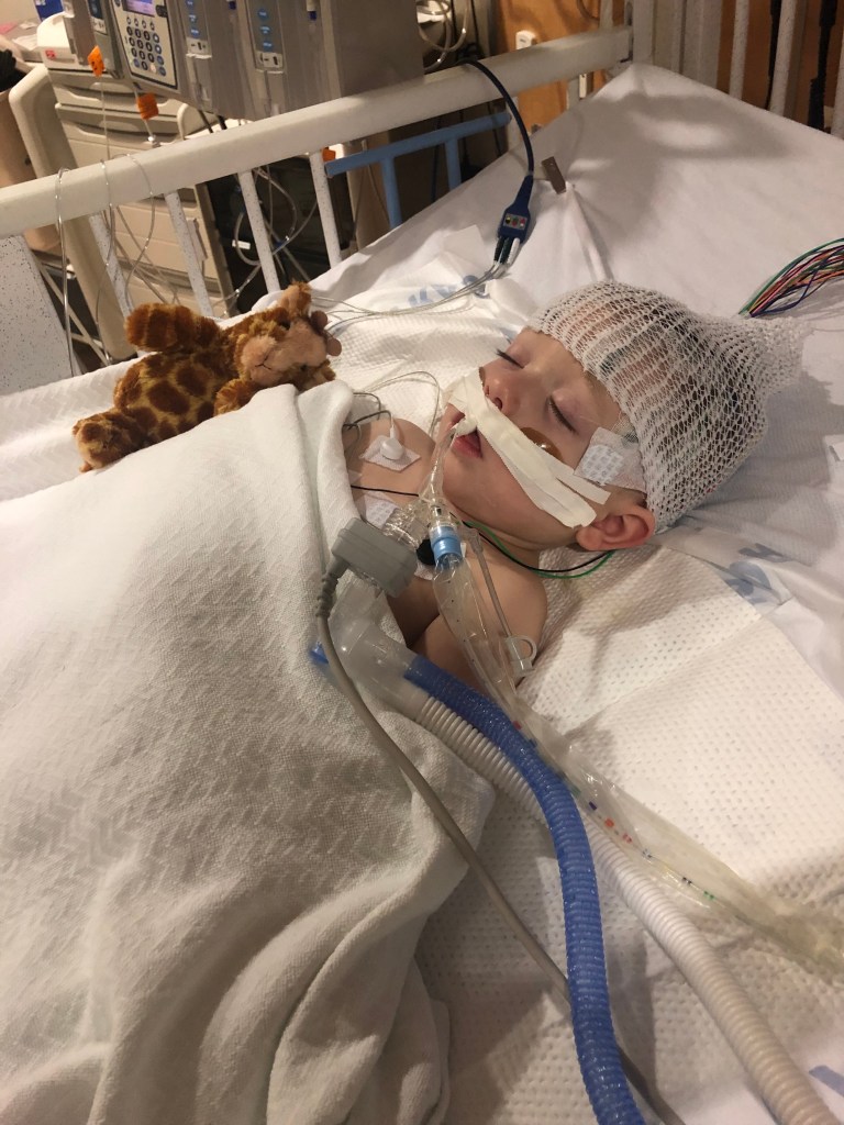 Our neurologist told us that it was absolutely imperative that we control the seizures to give him the best chance of healing. Typically once a kid is seizure free for 48 hours, they will start to wean them from sedation. In Matty’s case, they wanted to wait 72. The next week consisted of constantly counting the hours since he last seized. He was wearing EEG leads and was under 24/7 video observation from the EEG techs. Every time the nurse’s phone rang I shot up from wherever I was sitting and ran to ask if he was having a seizure. I can still hear the sounds from each machine beeping in my head. I will always remember the “ding ding ding, ding ding” of him fighting the breathing tube. Once 72 hours came and went, they started to wean Matty from sedation. The problem was that he was on such strong drugs to keep him sedated, that whenever he did come out of sedation, his heart rate shot up to 260. It was not a smooth process. He was withdrawing from all of the meds he was on. We would have to wean him a little slower off of the medications.